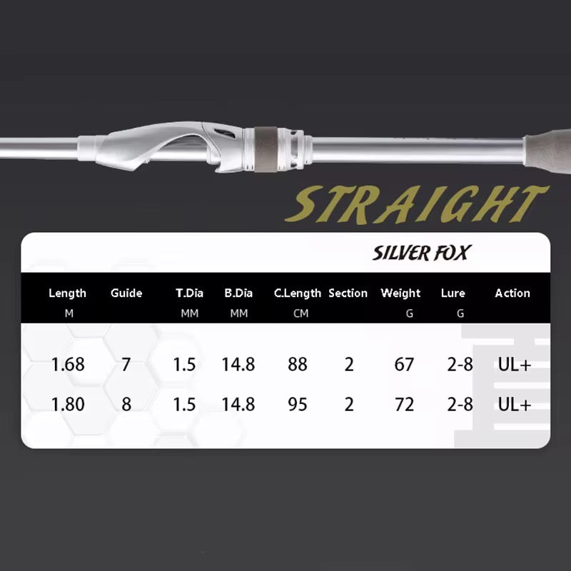 Caña Baitcast Ultra Ligera 2 Tramos 1.8m Carbono Resistente